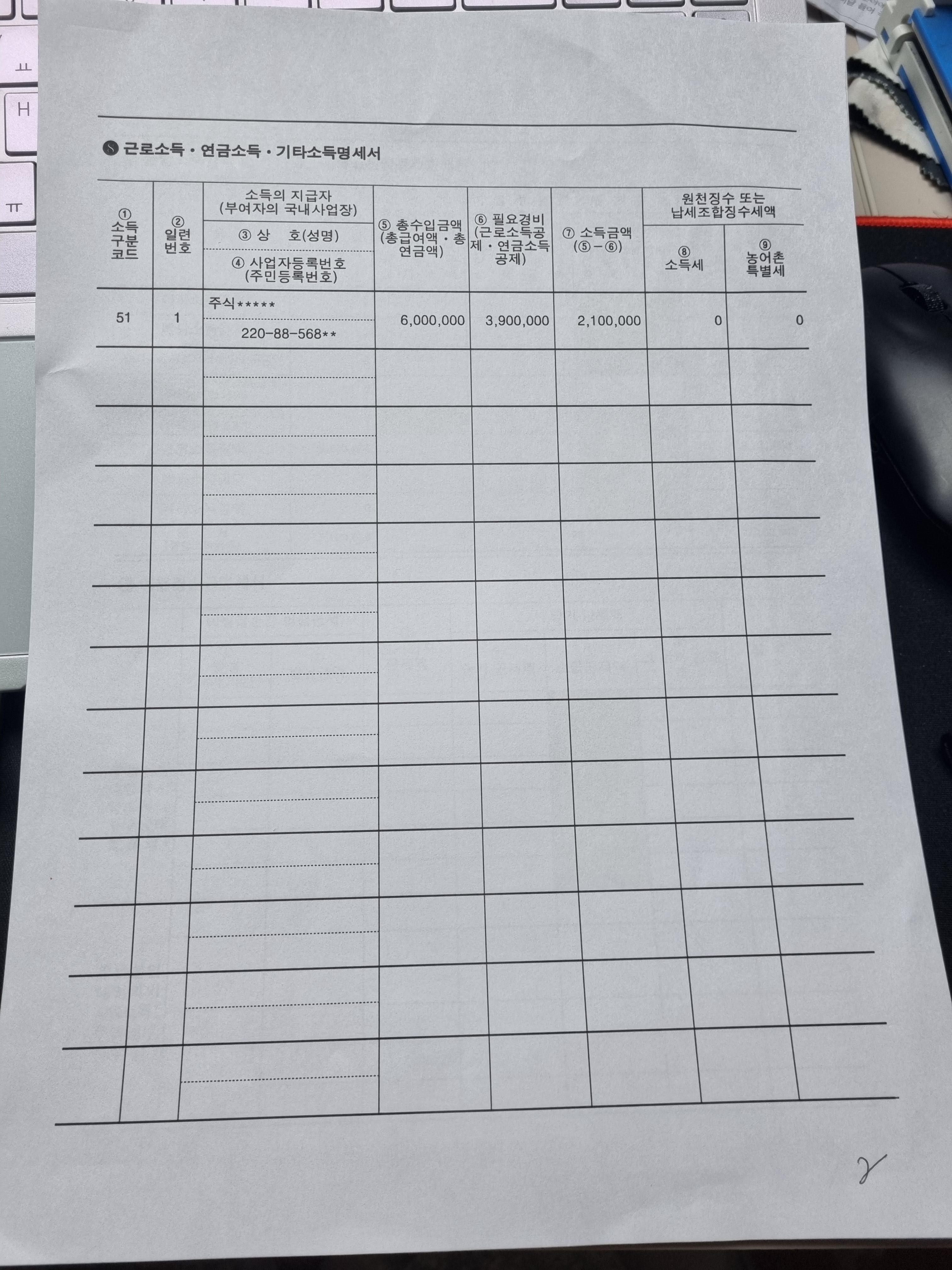 - 3.3% 원천징수 형태로 받은 기타소득