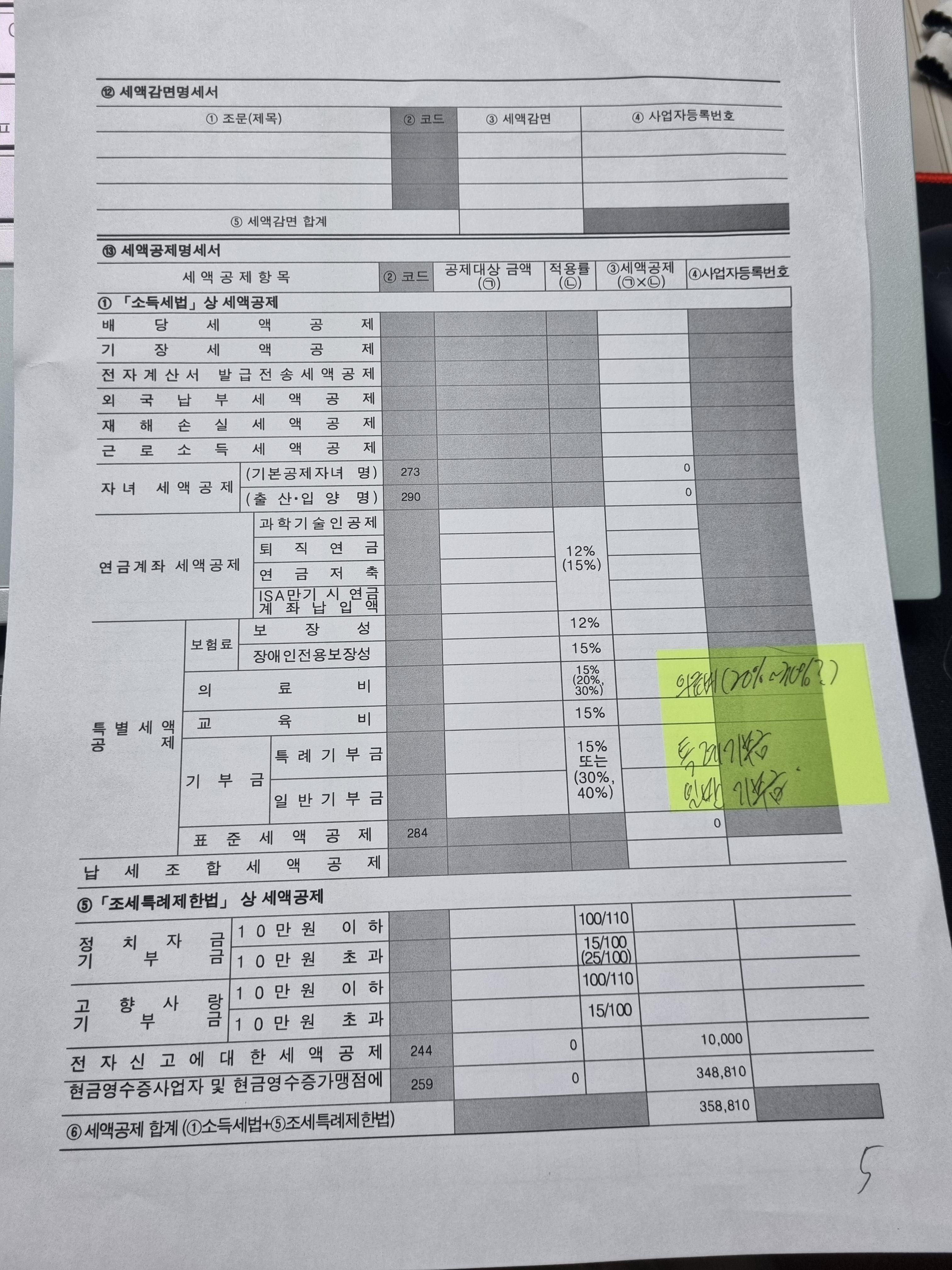 - 세액공제 항목 체크