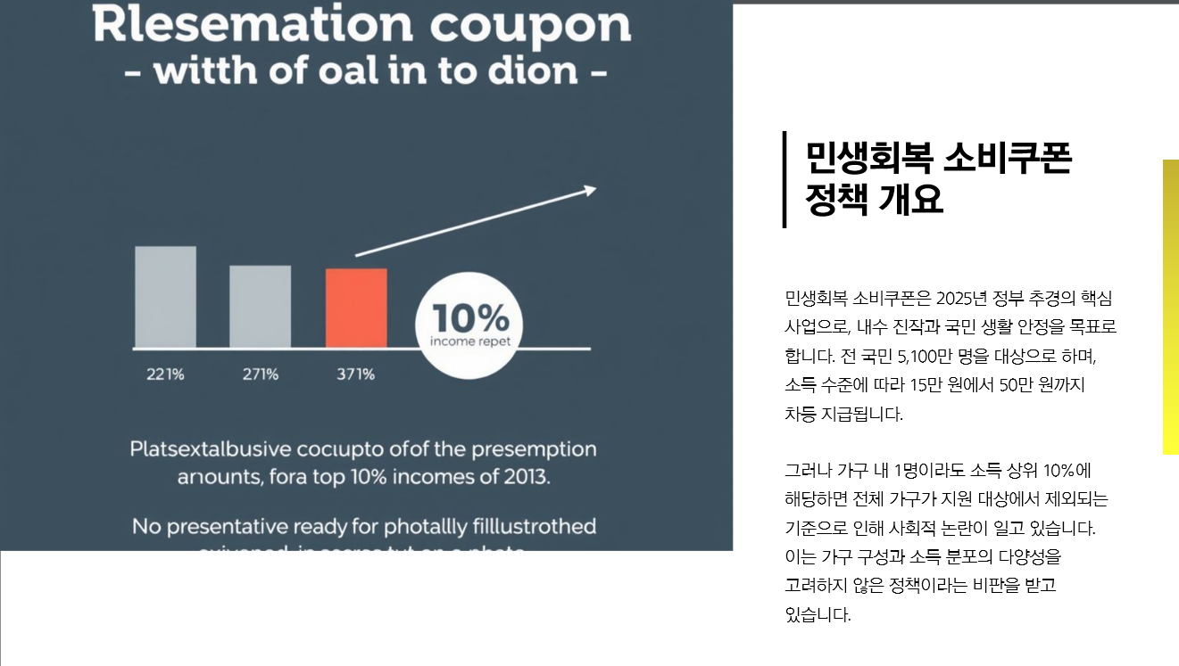 - 취지: 소비쿠폰 정책은 일시적 · 보편적 소비 진작 목적