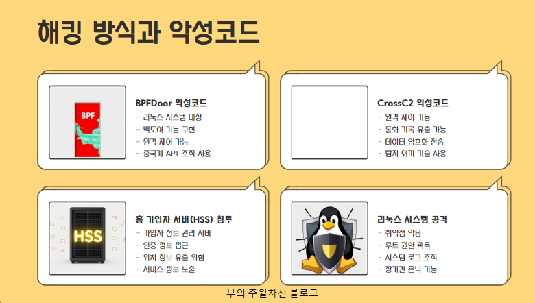 2024년 6월 25일, SK텔레콤은 전례 없는 사이버 해킹 공격을 받았습니다. 해커는 SKT 내부 시스템 관리용 서버에 침투해, 인증 정보와 백업 서버에 접근함으로써 전국 통신망 운영에 심각한 영향을 주었습니다. 단순한 DDoS(분산 서비스 거부) 공격이 아닌, 시스템 내부 제어를 노린 정교하고 고도화된 침입이었습니다.